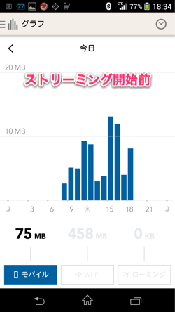 ストリーミング開始がだいたい18:34で75MB