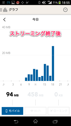 ストリーミング終了がだいたい18:55で94MB
