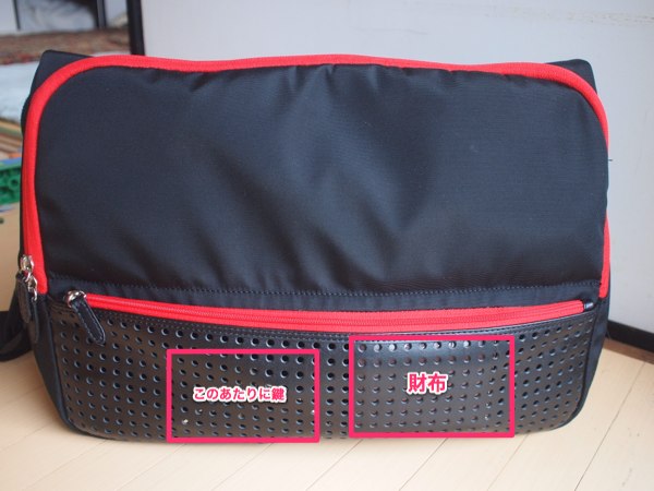 ・前のポケットにはカバンを掛けている状態で必要な物を入れる