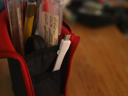 短めなケーブルですが、しっかりとした芯が入っているようでペンケースに入れておいても邪魔にならないので、一つ携帯していてもいいかもしれません。ネオクリッツのポケットに入れるとちょっとはみ出す程度。