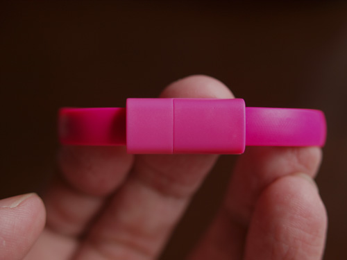 これはブレスレットタイプ。カバンとかに付けておくと、何かあった時に便利です。ただ商品説明にはRedとあるんですが、かなりピンクです。