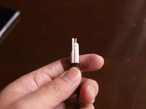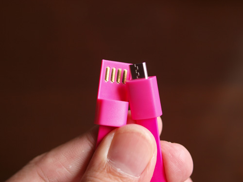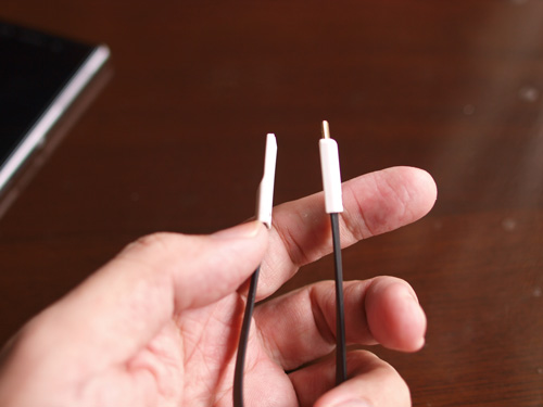 これはちょい堅めの芯が入っているケーブル。長さが5センチなのであまり邪魔になりません。