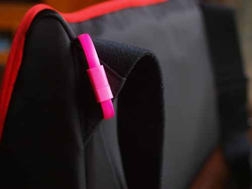 カバンのストラップに付けておくと何かあった時に便利かなと思います。ひらくPCばっぐ週アスモデルに合わせてRedにしたんだけどなぁ・・・。