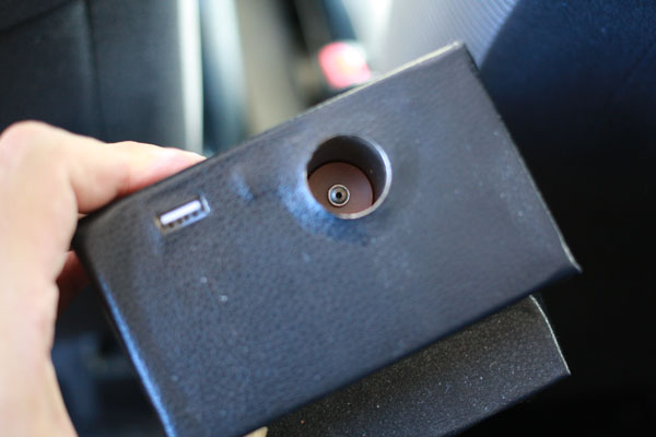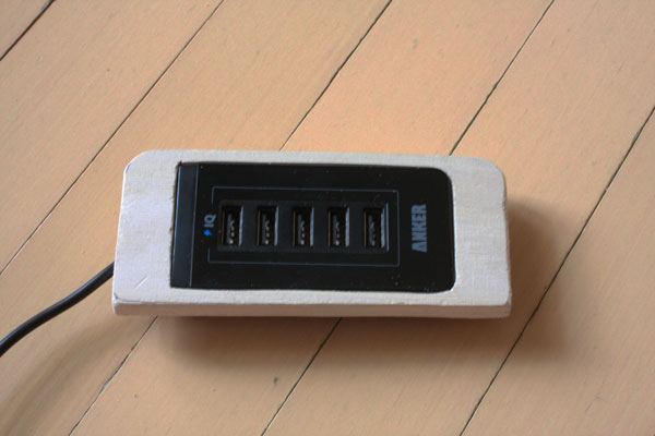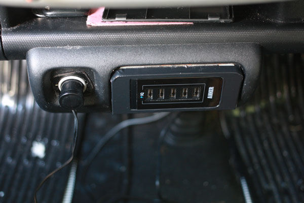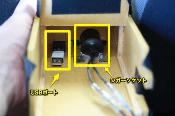 後部座席にもUSBが必要じゃないですか。そこでこんなものを作ってセンターコンソールの後ろに取り付けています。
