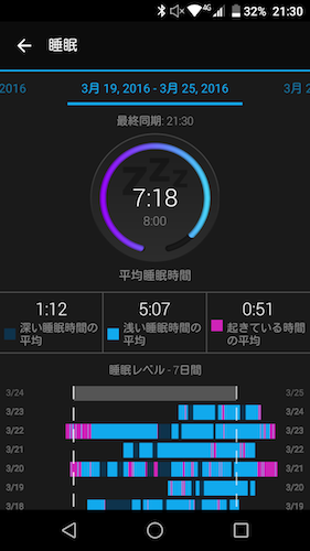 睡眠時間は「浅い眠り」「深い眠り」「起床」の3パターンで記録されています。