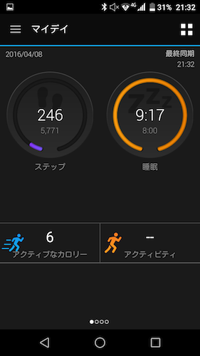歩数に関してはちょっと多めにカウントされてるんじゃないかないかと思います。 ちょいとお出かけして、仕事行ってって感じでも8000歩とかになっています。 仕事行くのは自家用車使ってますから、そこまで歩いてないよなーと思うんですけどね。