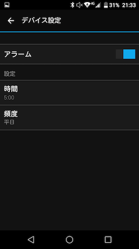 時間指定で、鳴らす日は休日か平日かを選ぶだけなので、曜日で起床時間が違うとかっていうパターンの場合にはちょっと不便ですね。 でも腕についているものでバイブレーションが動作するので、わかりやすいし家族にはあまり迷惑かからないかなぁ。