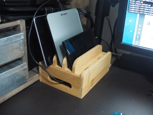 前回書いたMaxnicの充電ステーションと一緒に買ったのが、同じMaxnicの竹製卓上ホルダー。