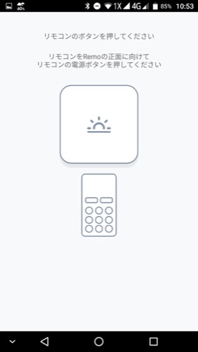 wi-fi接続後はremoに向けてリモコン電源ボタンを押して登録します。エアコンに最適化されているからでしょうか、すんなり認識されました。