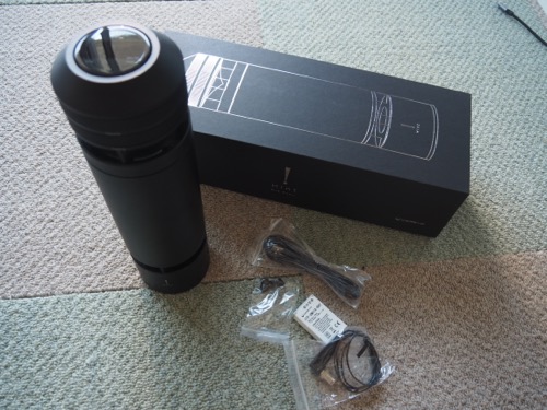 内容物は本体にバッテリー、アンテナケーブル、脚(っていうのかな、スピーカーの下に付けるもの)とUSBケーブル。