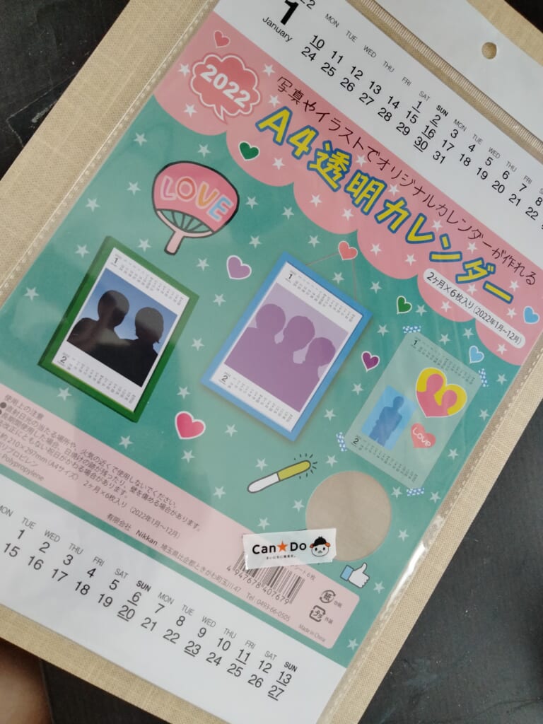 この透明カレンダーを先程のフォトフレームのクリアファイルの前に挟んであげれば、お気に入りの絵柄の2ヶ月分カレンダーの完成です。